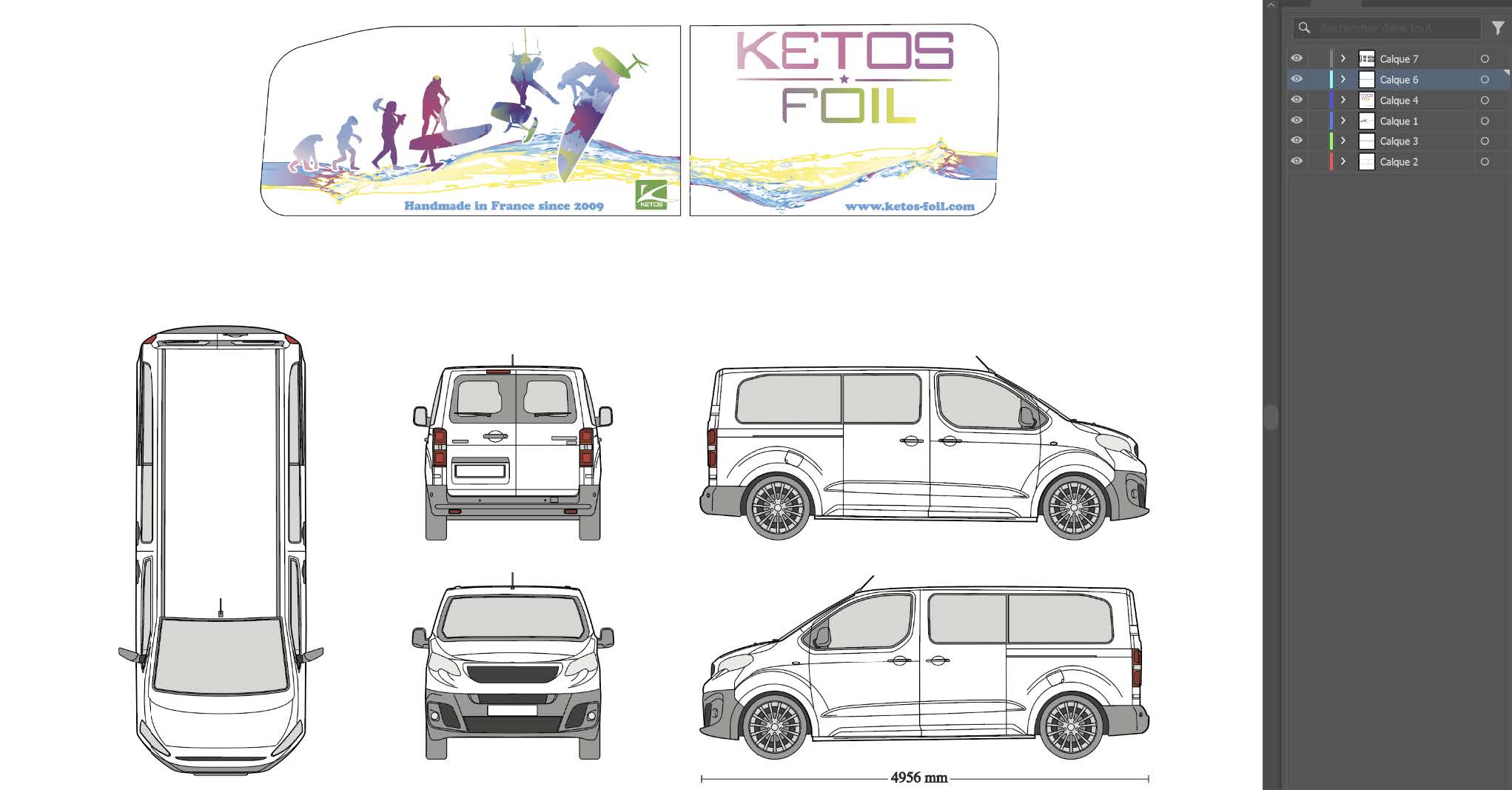 Réalisation d’une décoration de vitre latérale pour le véhicule utilitaire de la marque.