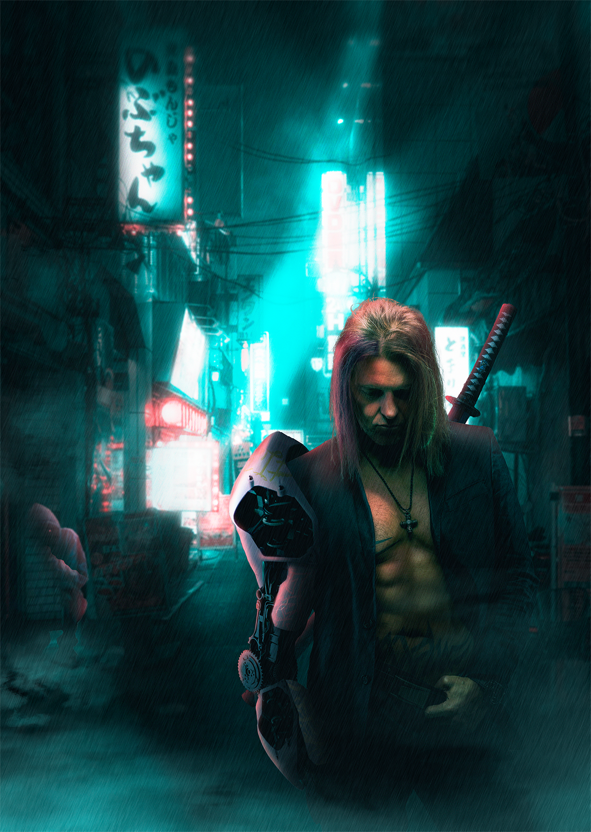 Réalisation d’un photomontage sur le thème « Cyberpunk » à partir d’une quinzaine d’images libres de droits.